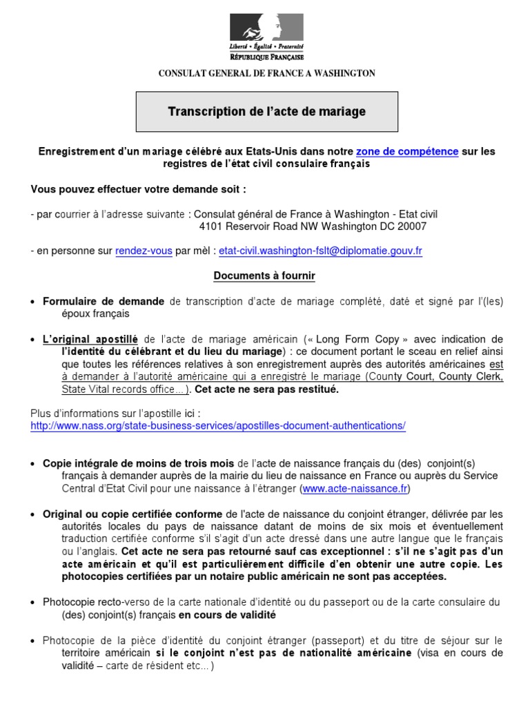 Transcription de décès sur le registre d'état… le décès est transcrit auprès des services… extrait d'acte de naissance,extrait d'acte de décès,copie intégrale de l'acte de naissance,fiche individuelle autorisation de transfert de corps pour inhumation au maroc,demande de prise en charge par les. Deux témoins qui doivent présenter. . délivré, la demande de transcription de l'acte de mariage doit en principe . être satisfaite sauf à ce que des éléments nouveaux. Demande de visa long séjour conjoint de français | طلب فيزا الالتحاق بالزوج بفرنسا. Vous allez adresser une demande de transcription à l'ambassade de france située dans le pays de mariage.